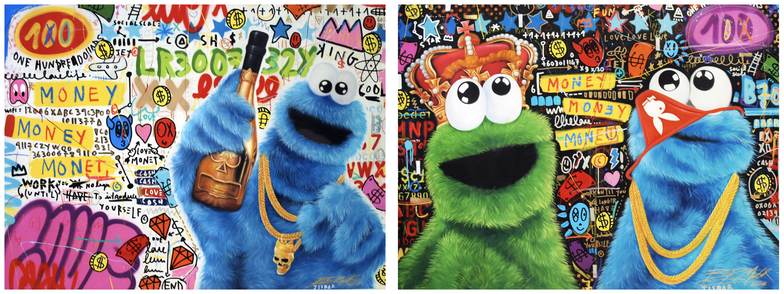 When I first started painting, I leaned heavily on collaborations to get my work out there. I tried to work with as many artists as possible and looked for painters who were in a similar genre but brought their unique style to the table. I primarily worked with realistic pop art in acrylic, so I sought out collaborations with graffiti artists and oil painters. The goal was never to blend into one another but to amplify each other. Some of my favorite pieces ever came from those early collaborations. I was fortunate to work with artists like Jisbar, Richy Billion, King Saladeen, Mr. Myls, and Atomiko.